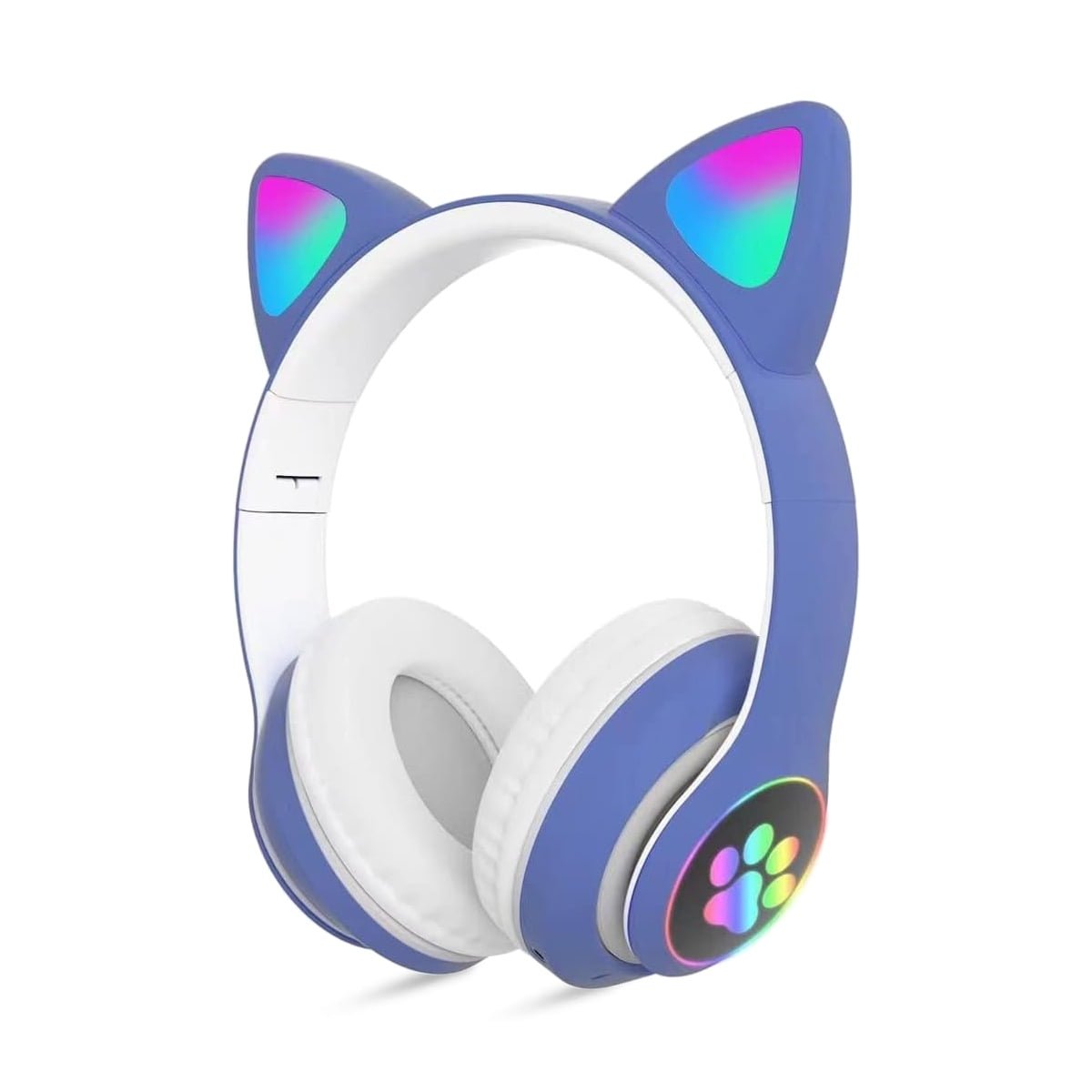 Rirool Cat Ear Bluetooth Headphones for Kids – Wireless Headset w/Mic, 94dB Volume Limit, LED Lights, Foldable, for School/Travel Blue