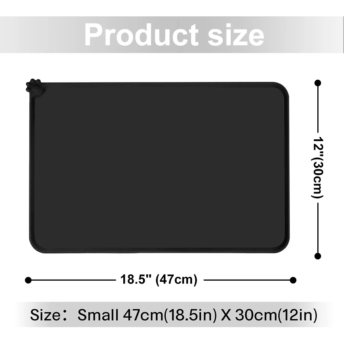 Rirool Silicone Dog Cat Bowl Mat – 18.5″ x 11.5″ – Non-Slip Waterproof Pet Feeding Mat – Black – Black