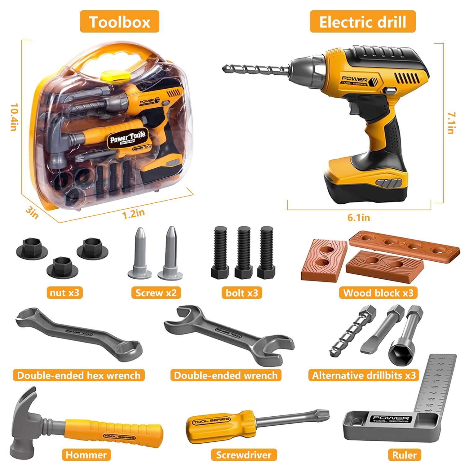 626 reviews for Rirool Kids Tool Set with Electronic Drill 37pc Pretend Play Construction Toys for Toddlers 3-6 Toolbox, Hammer, Screwdriver & Wood Blocks