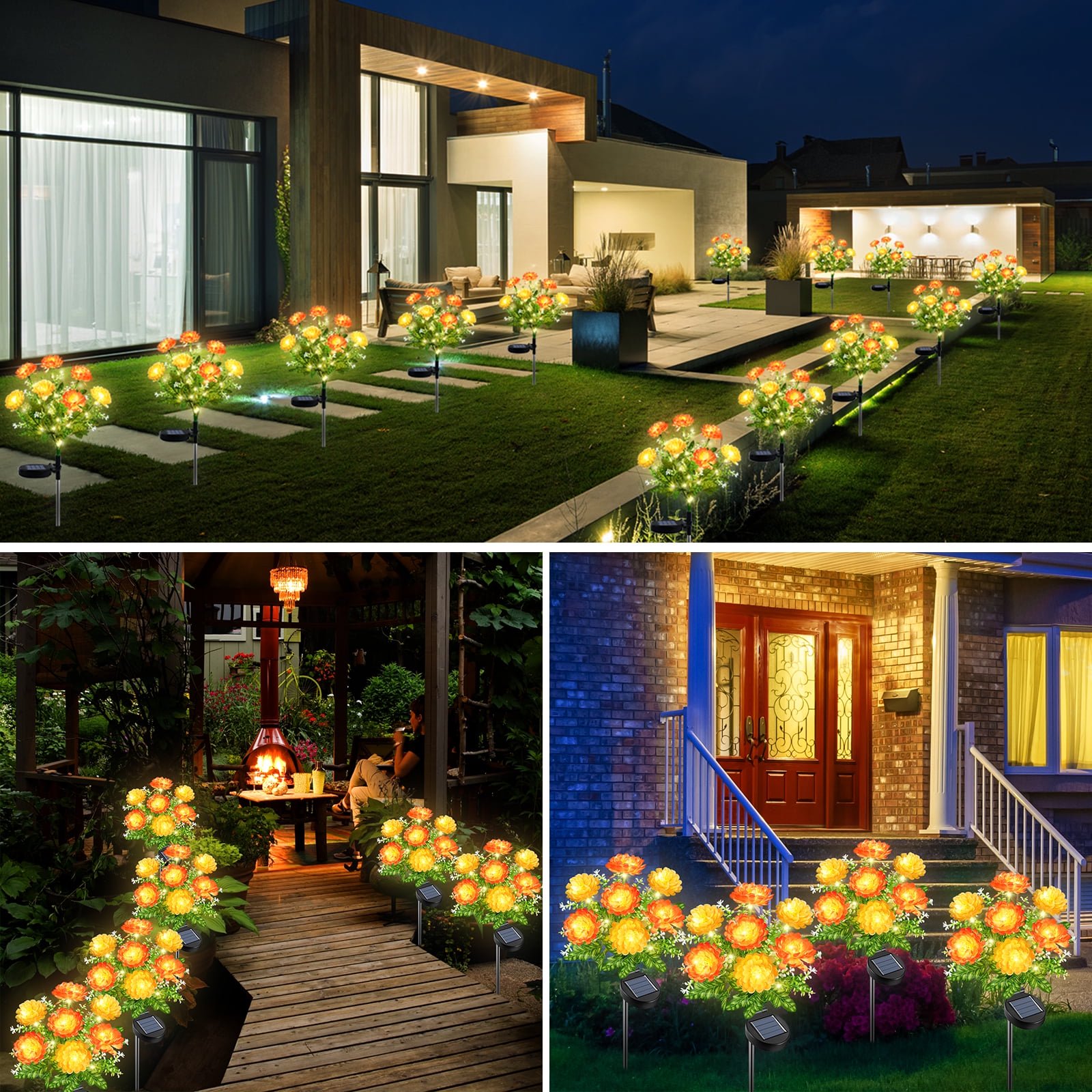 Adjustable Stems & Leaves: Flexible stainless steel stems and fabric leaves allow you to customize the shape and design of the lights to match your outdoor decor.