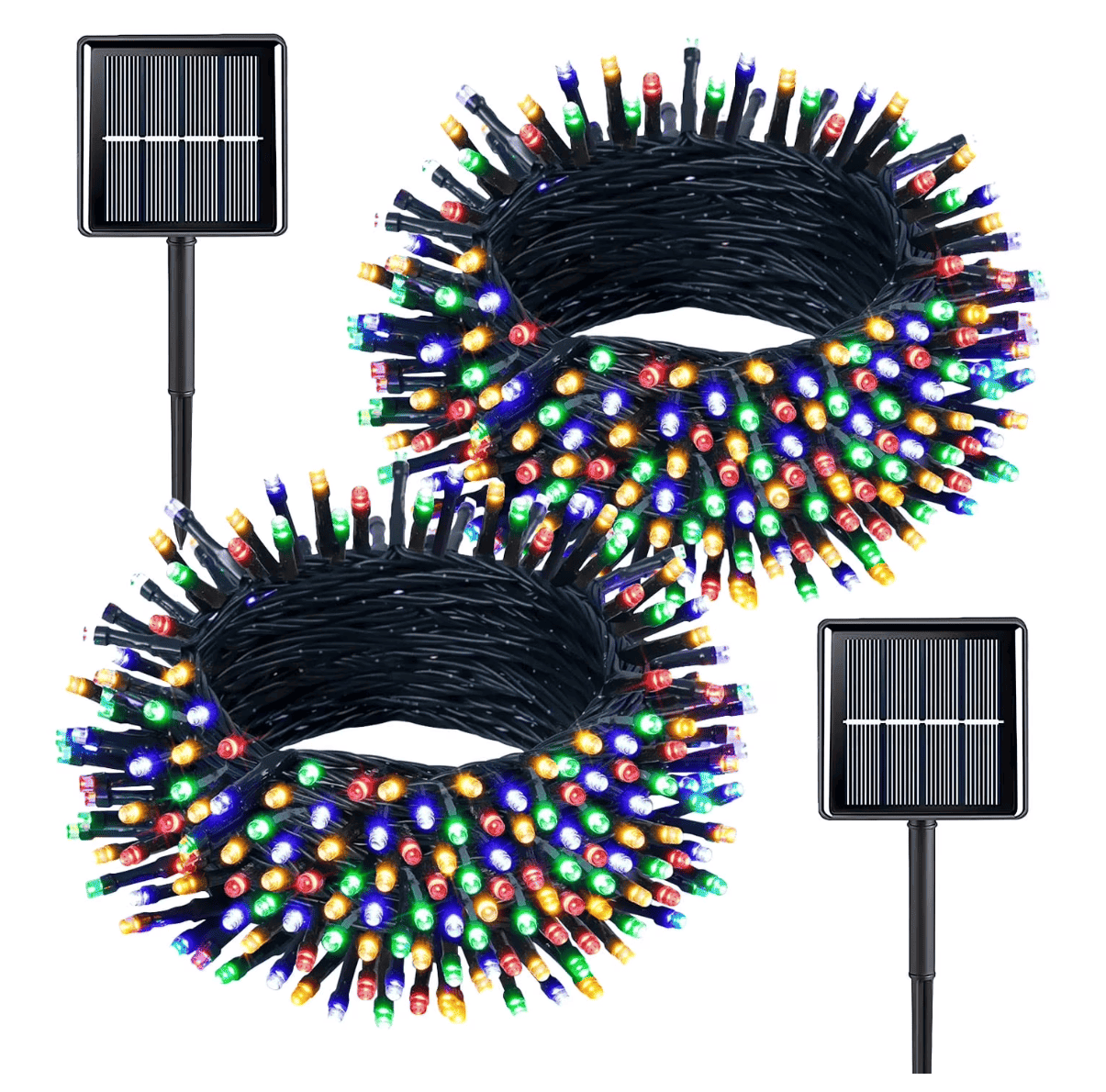 Rirool 2Pack 200LED Solar Christmas Lights, 72ft Multicolor Outdoor String Lights – Waterproof, 8 Modes for Gardens, Weddings, Parties, Christmas Tree Decorations