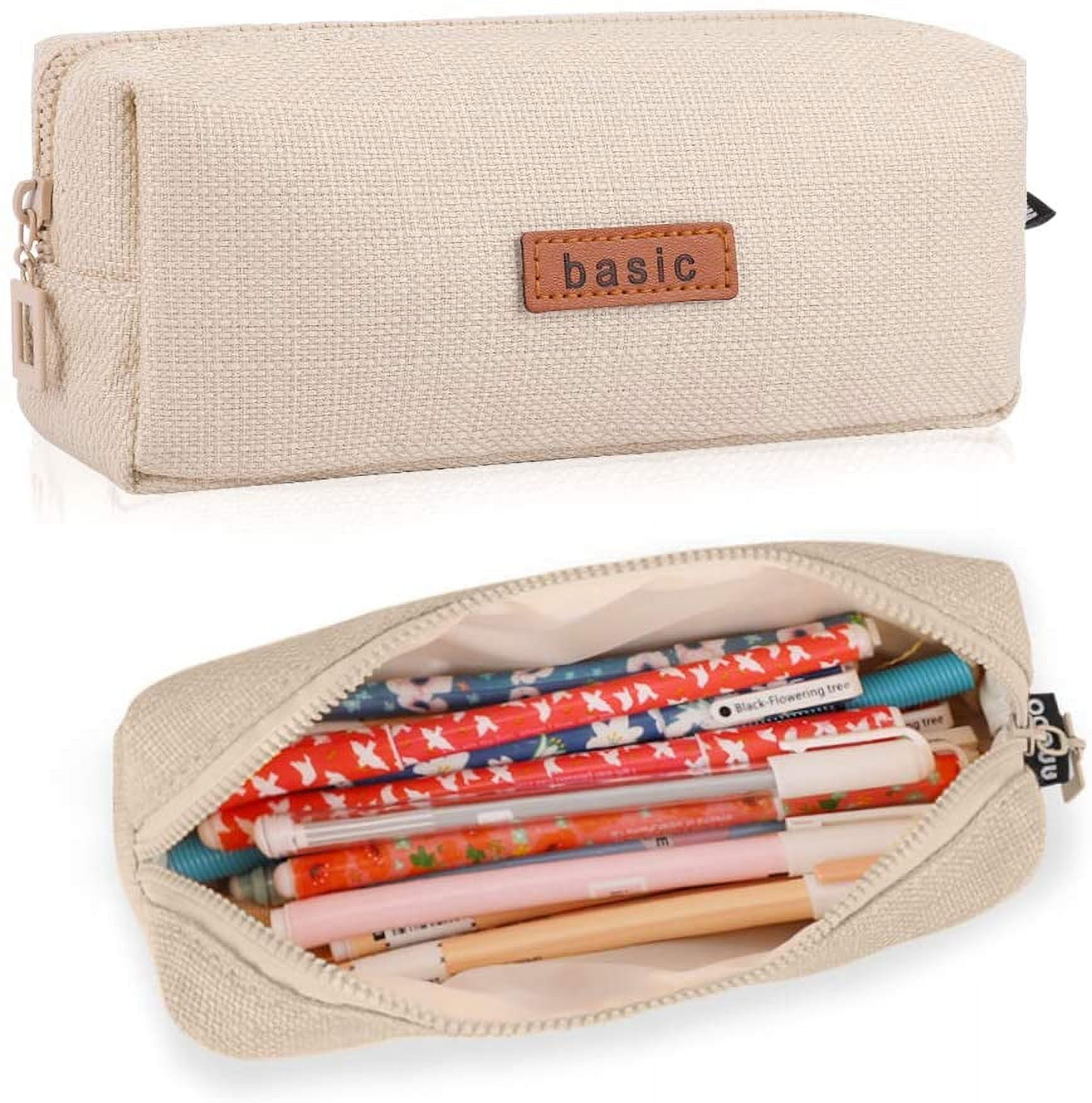 Small Pencil Case Student Pencil Pouch Coin Pouch Cosmetic Bag Office Stationery Organizer for Teen School-Beige(Beige)