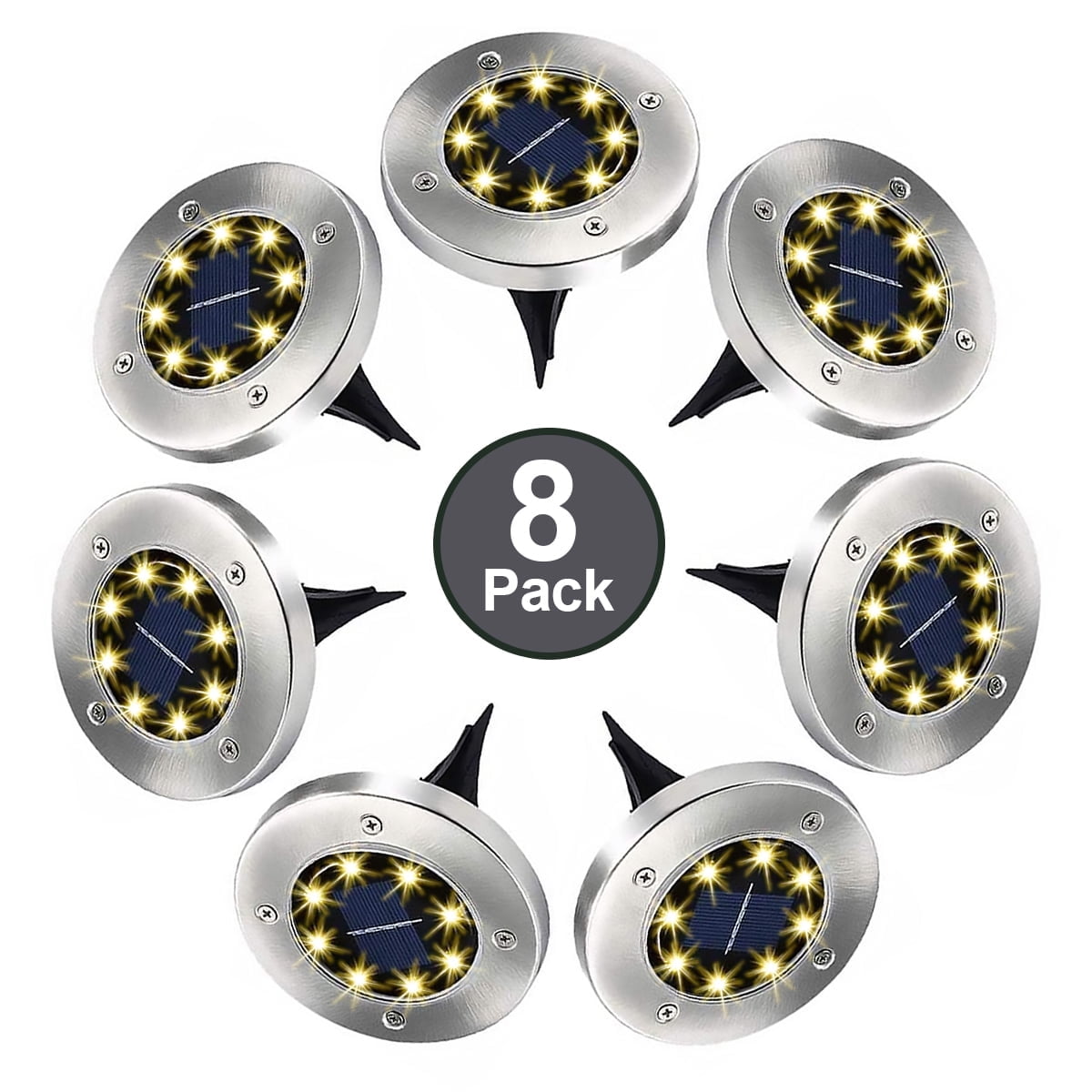 Solar Ground Lights, 8 LED Solar Disk Lights Outdoor Waterproof for Garden Yard Patio Pathway Lawn Driveway Walkway- Warm White (8 Pack)
